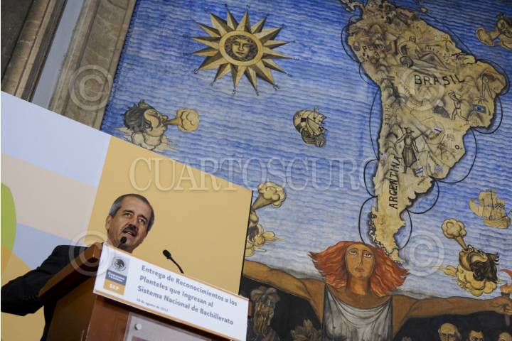 MÉXICO, D.F., 28AGOSTO2012.- José Ángel Córdova Villalobos, Secretario de Educación, durante la entrega de reconocimientos a los planteles que ingresan al Sistema Nacional Bachillerato. FOTO: ADOLFO VLADIMIR /CUARTOSCURO.COM