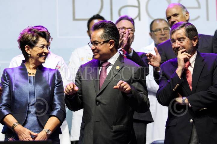 CIUDAD DE MÉXICO, 23OCTUBRE2017.- Mercedes Juan Lopez, ex secretaria de Salud (2012-2016); Leonel Luna Estrada, presidente de la Comisión de Gobierno de la Asamblea Legislativa del Distrito Federal (ALDF), y Juan Ramón de la Fuente, ex rector de la Universidad Nacional Autónoma de México (UNAM), durante la celebración por el Día del Médico, fecha que conmemora la inauguración por parte de Valentín Gómez Farías del Establecimiento de Ciencias Médicas en la Ciudad de México. FOTO: GALO CAÑAS /CUARTOSCURO.COM