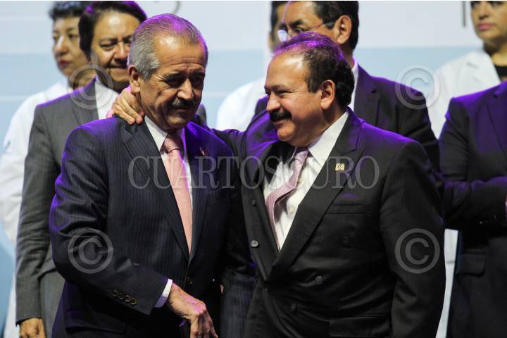 CIUDAD DE MÉXICO, 23OCTUBRE2017.- José Ángel Córdova Villalobos, ex secretario de salud (2006-2011), y Armando Ahued, secretario de Salud de la capital, durante la celebración por el Día del Médico, fecha que conmemora la inauguración por parte de Valentín Gómez Farías del Establecimiento de Ciencias Médicas en la Ciudad de México. FOTO: GALO CAÑAS /CUARTOSCURO.COM