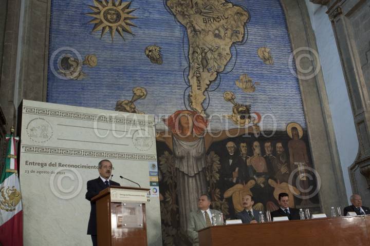 MÉXICO, D.F., 23AGOSTO2012.- José Ángel Cordova Villalobos, secretario de Educación Pública, durante la ceremonia en la cual se entrego el premio Stéen (que significa enseñanza en mixteco), que busca reconocer a aquellas personas que sobresalen por sus esfuerzos en favor de que los menores migrantes tengan educación. FOTO: MOISÉS PABLO /CUARTOSCURO.COM