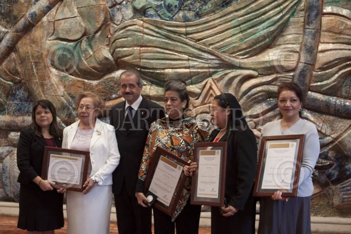 MÉXICO, D.F., 23AGOSTO2012.- José Ángel Cordova Villalobos, se tomo la foto del recuerdo con maestras galardonadas con el premio Stéen (que significa enseñanza en mixteco), que busca reconocer a aquellas personas que sobresalen por sus esfuerzos en favor de que los menores migrantes tengan educación. FOTO: MOISÉS PABLO /CUARTOSCURO.COM