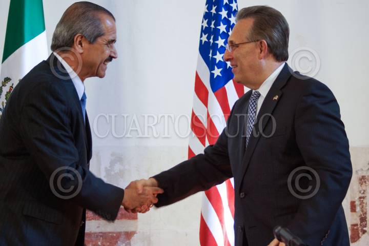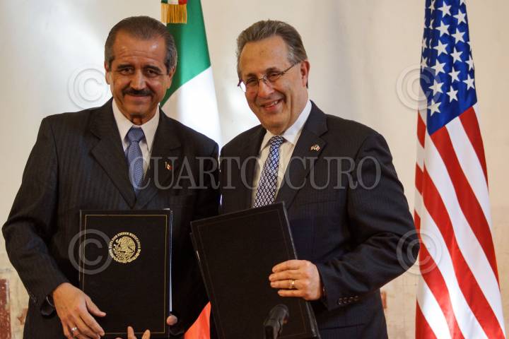 MÉXICO, D.F., 20NOVIEMBRE2012.- José Ángel Córdova Villalobos, Secretario de Educación y Anthony Wayne, embajador de Estados Unidos en México, tras firmar del memorándum de entendimiento entre México y Estados Unidos sobre Educación. FOTO: ADOLFO VLADIMIR /CUARTOSCURO.COM