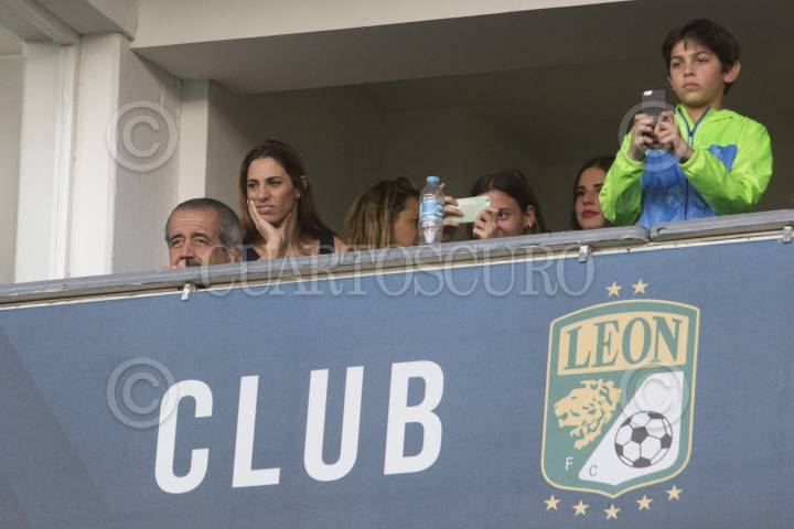 LEÓN, GUANAJUATO, 19MAYO2016.- José Ángel Cordova Villalobos, ex secretario de Salud y Johanna Slim Domit, observan el partido entre los tuzos del Pachuca contra los esmeraldas de León, con marcador de 1-1 en el juego de ida de la primera semifinal de la Liga MX Clausura 2016. FOTO: DANIEL CRUZ /CUARTOSCURO.COM