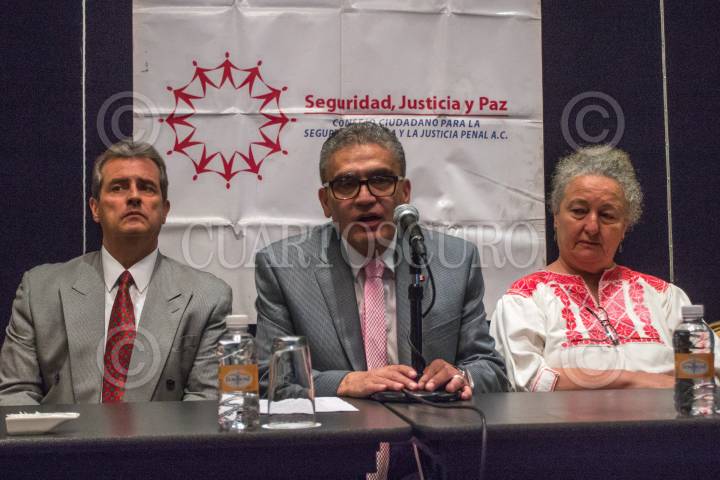 MÉXICO, D.F., 17NOVIEMBRE2015.- La asociación civil Seguridad, Justicia y Paz, consejo ciudadano para la seguridad publica y la justicia penal ofreció una conferencia de prensa para dar a conocer su postura ante la investigación de la Comisión Interamericana de Derechos Humanos CIDH e información sobre una de las integrantes Claudia Paz y Paz. Asistieron Gilda Aguilar y Steve Hecht como invitados de la asociación. FOTO: ISABEL MATEOS /CUARTOSCURO.COM