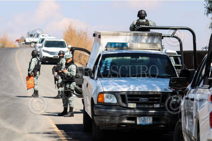 Agentes de la Guardia Nacional resguardan el sitio donde fueron alcanzados los atacantes de el "Wualo", primo de José Antonio Yepez Ortiz, alias "El Marro".