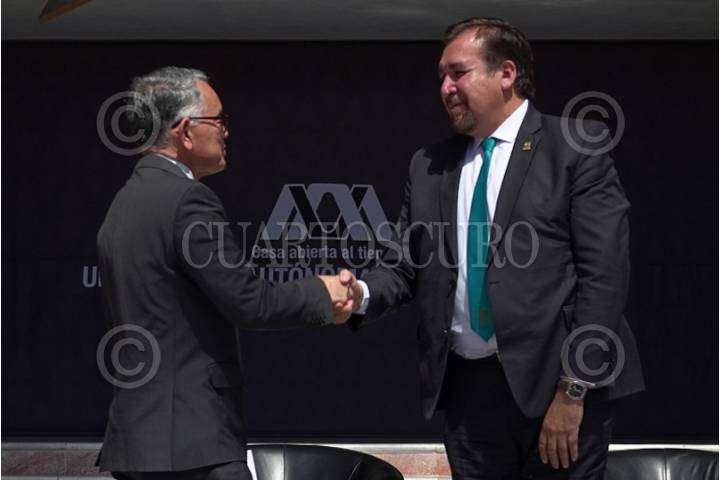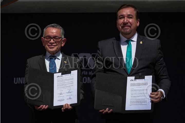 CIUDAD DE MÉXICO, 25FEBRERO2025.- Jose Antonio de los Reyes, rector de la UAM y Adán Escobedo, director general del Colegio de Bachilleres encabezaron la firma del Convenio General de Colaboración entre el Colegio de Bachilleres y la Universidad Autónoma Metropolitana, en la que D considerará el desarrollo de las bases y condiciones para la implementación de un posible Mecanismo de Admisión por Reconocimiento de Trayectoria Escolar Preuniversitaria. FOTO:ROGELIO MORALES/CUARTOSCURO.COM