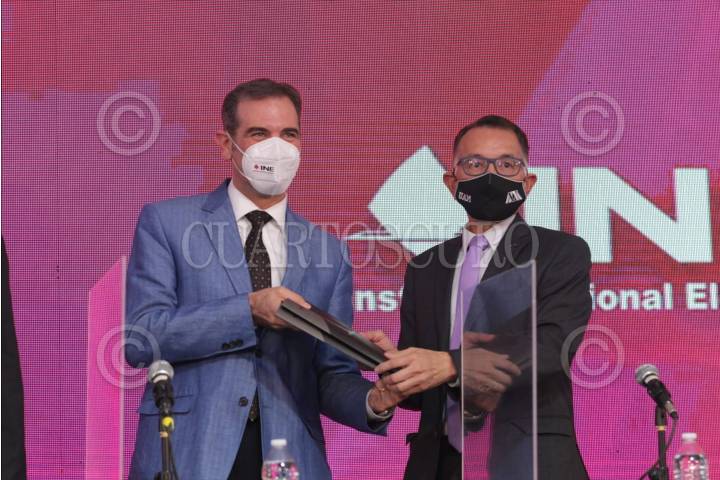 Lorenzo Córdova Vianello y José Antonio de los Reyes durante la entrega del Informe de Auditoría 2021