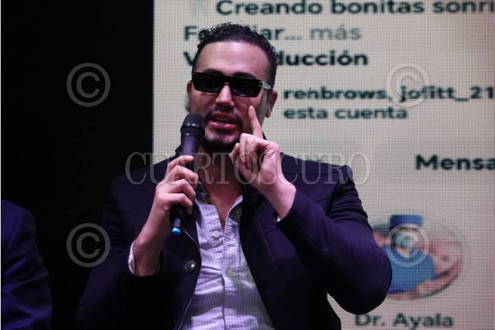 CIUDAD DE MÉXICO, 21FEBRERO2024.- El dentista José Ayala durante una conferencia de prensa en donde dio a conocer sus argumentos con la denuncia que tiene de la actriz Sandra Montoya, el acto se realizó en el Teatro Versalles. FOTO: GRACIELA LÓPEZ /CUARTOSCURO.COM