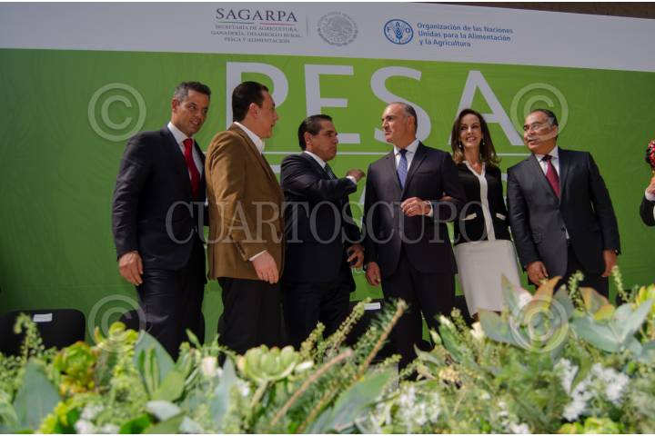 CIUDAD DE MÉXICO, 08NOVIEMBRE2017.- Los gobernadores Alejandro Murat, Oaxaca; Omar Fayad, Hidalgo; Silvano Aureoles Conejo, Michoaán; y Héctor Astudillo, Guerrero, acompañaron a José Calzada Rovirosa, titular de la Sagarpa, en la ceremonia de aniversario del Proyecto de Seguridad Alimentaria para Zonas Rurales (PESA Rural). FOTO: ANDRÉS YÁÑEZ /CUARTOSCURO.COM