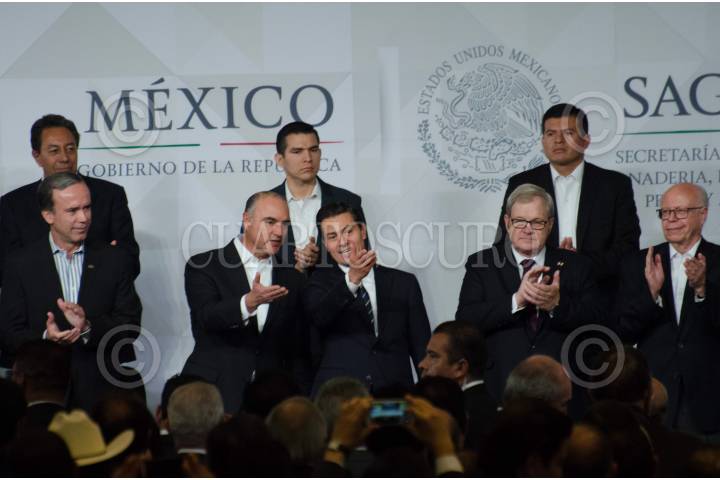 CIUDAD DE MÉXICO, 07DICIEMBRE2017.- El presidente Enrique Peña Nieto; José Calzada Rovirosa, Secretario de Agricultura, Ganadería, Desarrollo Rural, Pesca y Alimentación (SAGARPA), y Lawrence Macaulay, ministro de Agricultura de Canadá, encabezaron la inauguración de la Expo México Agroalimentaria Food Show 2017. FOTO: CUARTOSCURO.COM