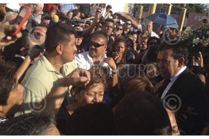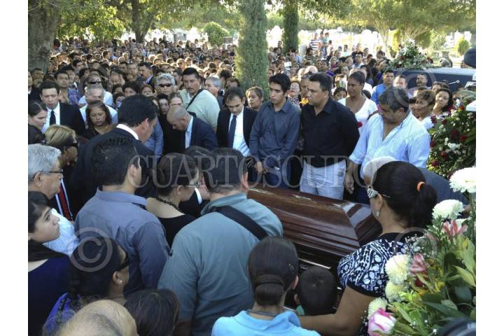 ACUÑA, COAHUILA, 04OCTUBRE2012.- Se realizó una misa de cuerpo presente de José Eduardo Moreira, hijo de Humberto Moreira Valdés exgobernador de Coahuila y ex presidente nacional de PRI, quien fue asesinado de dos impactos de bala en el camino al ejido Santa Eulalia, a 50 kilómetros del municipio de Acuña. José Eduardo era militante activo del PRI y se desempeñaba como coordinador regional de Desarrollo Social en el norte de Coahuila. Luego de la misa, el cuerpo de Eduardo Moreira partió hacia las instalaciones del Panteón Jardines de la Luz, en Ciudad Acuña, donde fue sepultado. Al salir de la misa de cuerpo presente en memoria de su hijo, Humberto Moreira dijo que el crimen de su primogénito es algo que no puede aguantar y afirmó que espera justicia. FOTO: CUARTOSCURO.COM