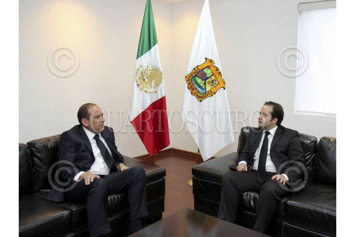 SALTILLO, COAHUILA, 04OCTUBRE2012.- El Secretario de Gobernación, Alejandro Poiré, y el Gobernador de Coahuila, Rubén Moreira, se reunieron hoy en Saltillo, Coahuila. Al mismo tiempo se realizaban el funeral de Jose Eduardo Moreira, hijo de Humberto Morerira, ex-gobernador del estado y sobrino del actual mandatario, el día de ayer fue asesinado de dos balazos en un camino cercano a Acuña. FOTO: CUARTOSCURO.COM