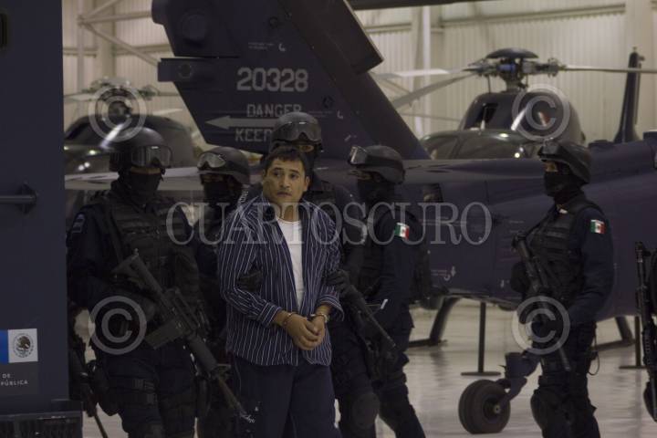 MÉXICO, D.F., 22OCTUBRE2012.- La secretaria de Seguridad Pública Federal presentó a Víctor Landeros Sifuentes, alías La Iguana presunto responsables del caso del secuestro de José Eduardo Moreira, hijo del ex gobernador de Coahuila. FOTO: VALENTINA ORTEGA /CUARTOSCURO.COM