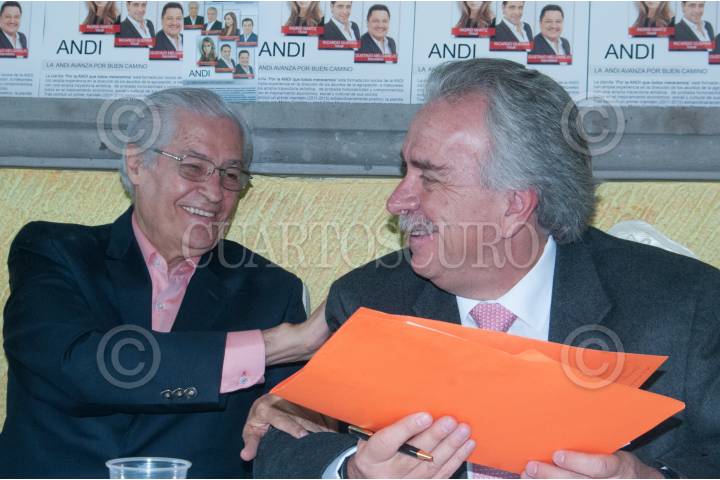 MÉXICO, D.F., 25JUNIO2015.- Los actores Mario Casillas y José Elías Moreno, quienes fueron electos como presidente y vicepresidente de la Asociación Nacional de Interpretes (ANDI), ofreció una conferencia de prensa en compañía de todo el consejo directivo electo, para responder a las acusaciones de la actriz Lilia Aragón, ya que señaló que el proceso electoral fue ilegal. FOTO: DIEGO SIMÓN SÁNCHEZ /CUARTOSCURO.COM