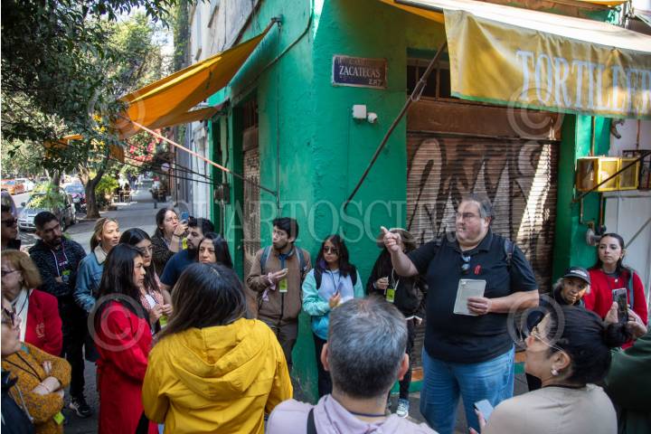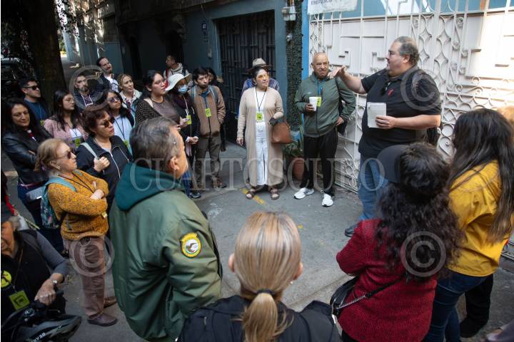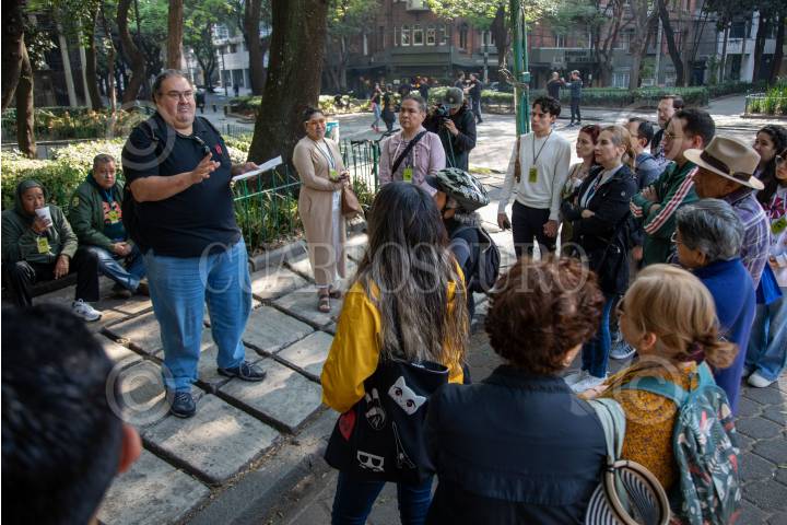 CIUDAD DE MÉXICO, 27ENERO2025.- El día de ayer decenas de personas –y algunas mascotas– caminaron por las calles de la colonia Roma como parte del “Ciclo Visitas Literarias”, organizado por la Coordinación Nacional de Literatura del Instituto Nacional de Bellas Artes y Literatura (INBAL), institución de la Secretaría de Cultura del Gobierno de México. El recorrido, titulado Las batallas en el desierto: JEP y la ciudad escrita, invitó a redescubrir el universo de la novela breve de José Emilio Pacheco. A las 09:30 h, bajo la sombra de los árboles en la Plaza Río de Janeiro, inició el paseo, encabezado por el escritor, maestro y literato Carlos Antonio de la Sierra, quien ha coordinado experiencias similares a lo largo de 15 años. El recorrido tuvo un significado especial, al conmemorar el onceavo aniversario luctuoso de José Emilio Pacheco (1939- 2014). De la Sierra subrayó el legado del autor: “La gran virtud de José Emilio Pacheco es que su obra sigue siendo vigente. Las batallas en el desierto no es solo un testimonio de una época, sino una reflexión universal sobre los seres humanos: sus pasiones, sus tribulaciones y sus desafíos". FOTO: SECRETARÍA DE CULTURA/CUARTOSCURO.COM