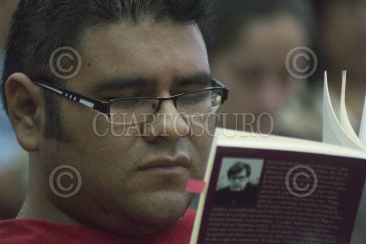 MÉXICO, DF., 31ENERO2014.- Lectores de José Emilio Pacheco se reunieron en el Centro Cultural Universitario Tlatelolco para dar una lectura en voz alta de fragmentos de textos del escritor fallecido el pasado domingo 26 de enero. FOTO: MARÍA JOSÉ MARTÍNEZ /CUARTOSCURO.COM