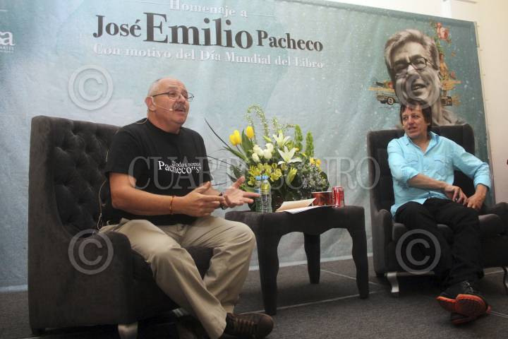 Rafael Vargas y Jesús Quintero durante la mesa “Octavio Paz y José Emilio Pacheco: la lectura, forma perfecta de la amistad” con motivo del natalicio de José Emilio Pacheco.