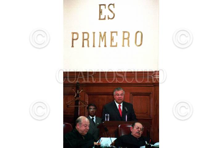 En sesión solemne conjunta de los plenos de la Suprema Corte de Justicia de la Nación y del Consejo de la Judicatura Federal, el presidente del TRIFE, José Fernando Ojesto Martínez Porcayo, rendió su informe de labores. FOTO: Victoria Valtierra/CUARTOSCURO.COM