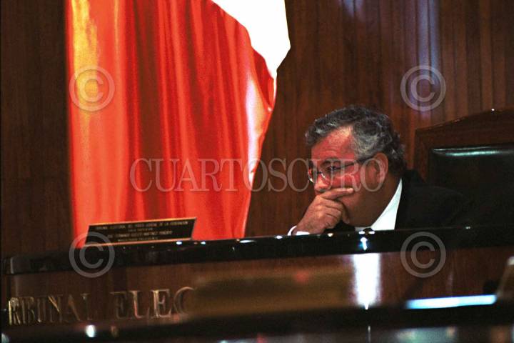 José Fernando Ojesto Martínez Porcayo, durante la sesión ordinaria del TRIFE, donde se ratificó la multa en contra del PRI por mil millones de pesos, por desvio de recursos en la campaña de Francisco Labastida. FOTO: Isaac Aguilar/CUARTOSCURO.COM