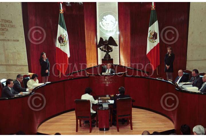 Aspecto de la sesión ordinaria del TRIFE, donde se ratificó la multa en contra del PRI por mil millones de pesos, por desvio de recursos en la campaña de Francisco Labastida. FOTO: Isaac Aguilar/CUARTOSCURO.COM