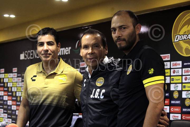 CULIACÁN, SINALOA, 17JUNIO2019.- El club de fútbol Dorados de Sinaloa presentó al profesor José Guadalupe Cruz como su nuevo director técnico, en sustitución de Diego Armando Maradona. En su primera conferencia aseguró que su objetivo principal es que Dorados ascienda a primera división de la Liga Mexicana de Fútbol durante la próxima temporada. FOTO: JUAN CARLOS CRUZ /CUARTOSCURO.COM