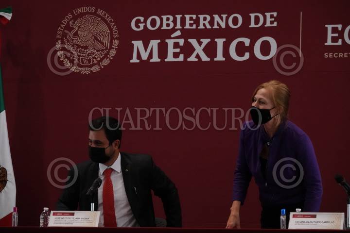 José Héctor Tejada y Tatiana Clouthier durante la conferencia de prensa con motivo de la edición 2021 del Buen Fin