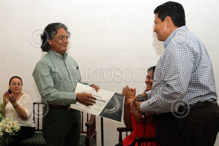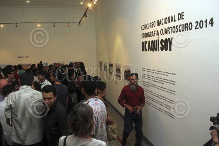 Premiacion De Aqui Soy-6.jpg GUADALAJARA, JALISCO, 27JUNIO2014.- Esta noche en el Museo del Periodismo y las Artes Gráficas (MUPAG) de esta ciudad se llevo acabo la entrega de Premios del concurso Nacional de Fotografía Cuartoscuro 2014, “De Aquí Soy”, dicho evento estuvo encabezado por el Director de la Agencia y Revista Cuartoscuro, Pedro Valtierra, el Director del Museo, Víctor Ortiz Partida y el Fotoperiodista, José Hernández Claire, quien fue reconocido con la estatuilla del Premio Cuartoscuro a la Trayectoria 2014, el ganador del primer lugar fue para Marcolino Hernández Charrez, segundo lugar para Emiliano Javier Thibaut Muchnik y el tercer lugar, Arturo Alejandro Albarrán Padilla, posteriormente se dio acceso a la exposición relacionada al concurso antes mencionado. FOTO: FERNANDO CARRANZA GARCIA /CUARTOSCURO.COM