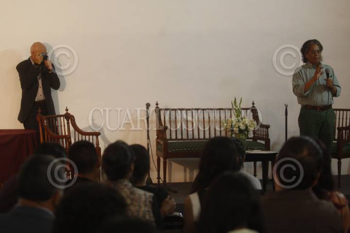 GUADALAJARA, JALISCO, 09SEPTIEMBRE2016.- Pedro Valtierra, Pedro Meyer y José Hernández Claire, durante la clausura de actividades de la II Semana de la Fotografía, que organiza el Centro Universitario de Arte, Arquitectura y Diseño de la Universidad de Guadalajara. FOTO : FERNANDO CARRANZA GARCIA / CUARTOSCURO.COM