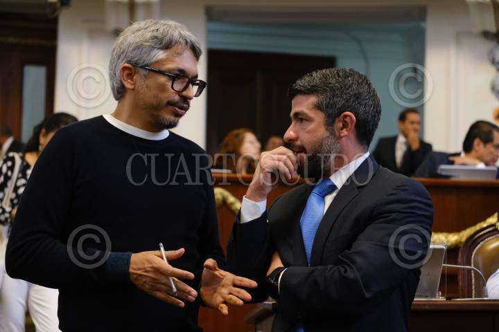 CIUDAD DE MÉXICO, 30JULIO2019.- José Luis Rodríguez Díaz de León, diputado por el distrito 12 y Mauricio Tabe Echartea, coordinador del PAN en el Congreso local, durante el Segundo Periodo Extraordinario en la que se aprobó el apartado 2 en materia de personas, pueblos y comunidades afromexicanas del Artículo 2 de la Constitución Política y se mantuvo en receso la Ley de Seguridad Ciudadana para esperar su aprobación el día de mañana en Sesión Extraordinaria. FOTO: GRACIELA LÓPEZ /CUARTOSCURO.COM