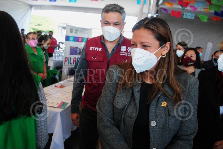 Evelyn Parra, alcaldesa de Venustiano Carranza, recorre la Feria del Empleo.