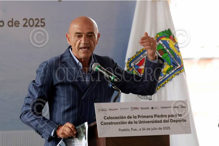 PUEBLA, PUEBLA, 24 de julio de 2025.- El entrenador de fútbol José Luis Sánchez Solá durante la colocación de la primera piedra para la construcción de la Universidad del Deporte, en el Estadio Olímpico Ignacio Zaragoza. FOTO: MIREYA NOVO /CUARTOSCURO.COM