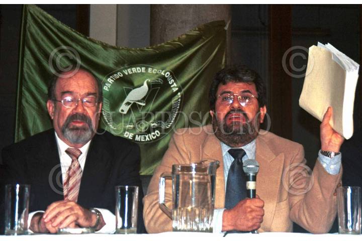 Leon Konik y Jose Luis Ameda, militantes del PVEM, se manifestaron a favor de la resolución que el Tribunal Federal Electoral adoptó hacia su partido en la que la dirigencia es desconocida por el TRIFE. FOTO:Iván Stephens/CUARTOSCURO.COM