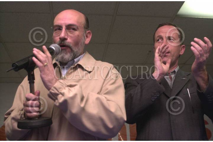 Luis Felipe Bravo Mena y José Luis Luege Tamargo, dirgentes del PAN nacional y del D.F., durante la entrega de credenciales a nuevos militantes de ese partido. FOTO: Juan Pablo Zamora/CUARTOSCURO.COM