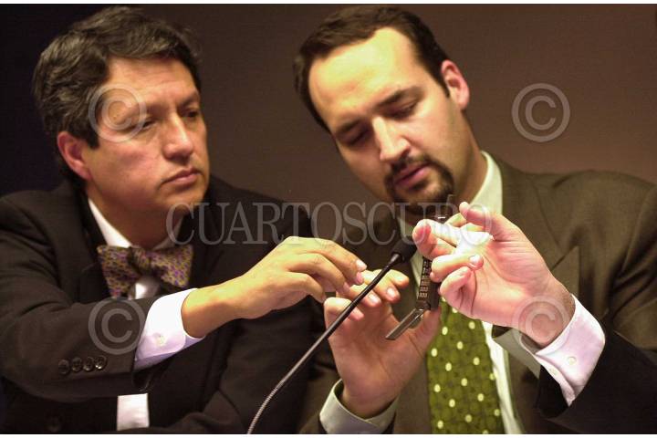 Tarcisio Navarrete y José Luis Novales, diputados panistas, en una conferencia de prensa y atravez de vía telefónica se comunicaron con el disidente Cubano, Oswaldo Payá. El Isleño es candidato al premio Nobel de la Paz. FOTO: Victoria Valtierra/CUARTOSCURO.COM