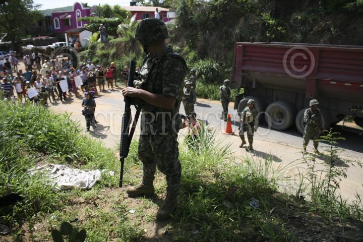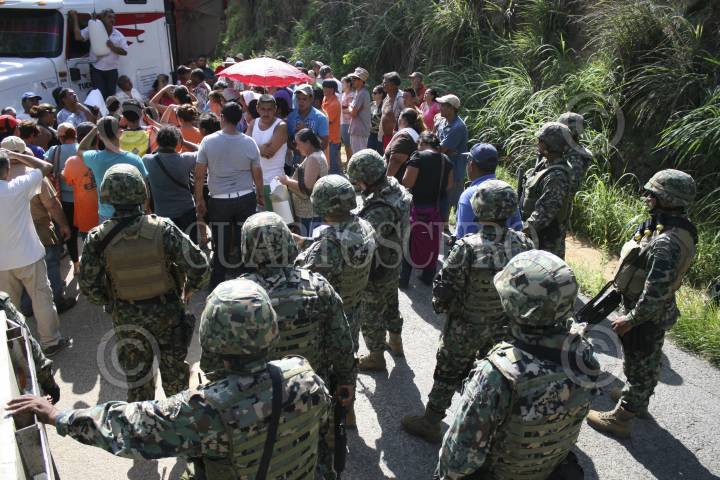 LÁZARO CÁRDENAS, MICHOACÁN, 28JUNIO2014.- Continúan los bloqueos carreteros en la costa michoacana a favor del doctor José Manuel Mireles Valverde, desde Caleta de Campos, La Huahua, Boca de Apiza y hasta llegar al vecino municipio de Aquila, ya en los límites con el estado de Colima, todo ello en pro de la libertad del polémico galeno y de los 82 hombres con quienes lo agarraron; en este contexto, cientos de soldados y marinos se desplegaron por la región, pare evitar brotes de violencia. FOTO: JUAN JOSÉ ESTRADA SERAFÍN /CUARTOSCURO.COM