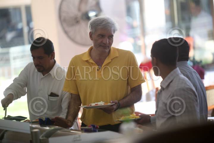 TEPIC, NAYARIT, 12MAYO2017.- José Manuel Mireles Valverde, fundador de las autodefensas en Michoacán, salió libre tras casi cuatro años de estar preso del Cefereso 4, mejor conocido como "El Rinconcito", un juez le otorgó libertad bajo caución, por lo que podrá seguir su juicio en libertad por el delito de uso de armas de uso exclusivo de las fuerzas armadas. Tras su salida de las rejas fue a desayunar acompañado de amigos. FOTO: ARMANDO SOLÍS /CUARTOSCURO.COM