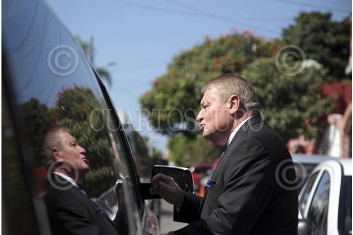 CUERNAVACA, MORELOS, 14NOVIEMBRE2016.- José Manuel Sanz, Secretario Técnico del Ayuntamiento de Cuernavaca se despide del presidente municipal de Cuernavaca, Cuauhtémoc Blanco (que se encuentra dentro de su camioneta) al finalizar su participación en el programa “Visita tu colonia”. Los detractores del ex futbolista lo acusan de designar a Sanz en ese puesto para que gobierne por él. FOTO: MARGARITO PÉREZ RETANA /CUARTOSCURO.COM