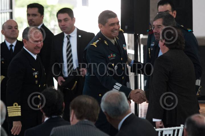 CIUDAD DE MÉXICO, 19NOVIEMBRE2018.- El Almirante José Rafael Ojeda, futuro secretario de Marina, y el General Luis Crescencio Sandoval, futuro titular de la Sedena, asistieron a la presentación del proyecto "Memoria Histórica y Cultural de México", que será presidida de forma honoraria por Beatriz Gutiérrez Müller, esposa del Presidente Electo Andrés Manuel López Obrador. La ceremonia se realizó en el Archivo General de la Nación. FOTO: MOISÉS PABLO /CUARTOSCURO.COM