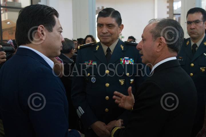 CIUDAD DE MÉXICO, 19NOVIEMBRE2018.- Mario Delgado, coordinador de los diputados federales de Morena; el Almirante José Rafael Ojeda, futuro secretario de Marina, y el General Luis Crescencio Sandoval, futuro titular de la Sedena, asistieron a la presentación del proyecto "Memoria Histórica y Cultural de México", que será presidida de forma honoraria por Beatriz Gutiérrez Müller, esposa del Presidente Electo Andrés Manuel López Obrador. La ceremonia se realizó en el Archivo General de la Nación. FOTO: MOISÉS PABLO /CUARTOSCURO.COM