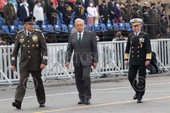 Andrés Manuel López Obrador, Presidente de México, encabezó la parada militar por la conmemoración de los 211 años del Grito de la Independencia, en el Zócalo. Lo acompañaron: Luis Cresencio Sandoval, secretario de la Defensa Nacional, y José Rafael Ojeda Durán, secretario de Marina.