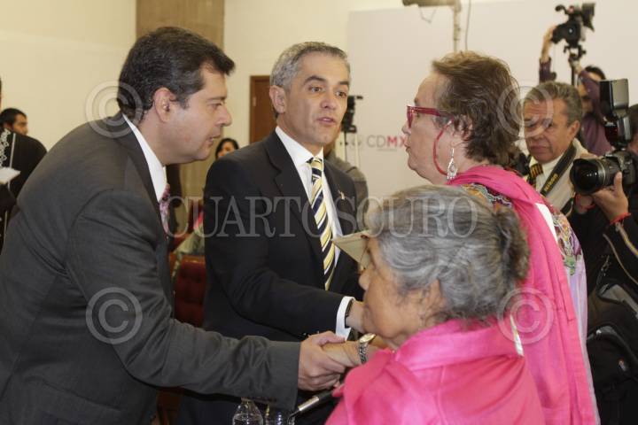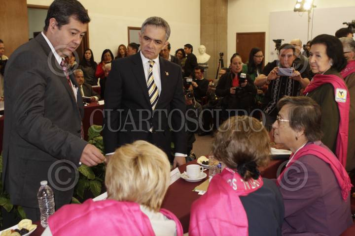 MÉXICO, D.F., 21AGOSTO2015.- José Ramón Amieva Gálvez, secretario de Desarrollo Social del Distrito Federal y Miguel Ángel Mancera, Jefe de Gobierno, durante la instalación del Consejo de Mujeres y Hombres Adultos Mayores, en la sede del GDF. FOTO: MOISÉS PABLO /CUARTOSCURO.COM