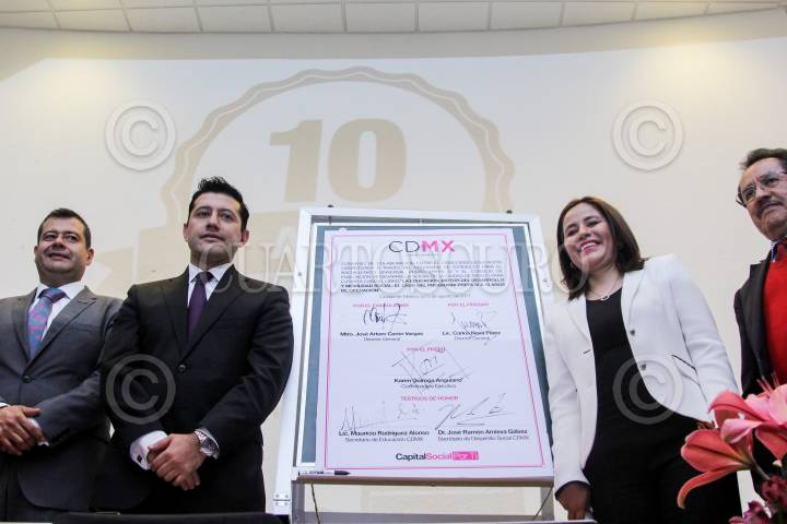 CIUDAD DE MÉXICO, 11AGOSTO2017.- Con motivo del décimo aniversario del Programa de estímulo económico “Prepa Sí”, se realizó la firma de Convenio entre el Fideicomiso Educación Garantizada y el Cosnejo de Evaluación del Desarrollo Social de la Ciudad de México, para laborar el libro “La educación motor del desarrollo y movilidad social: El caso del programa Prepa Sí a 10 años de operación”. FOTO: GALO CAÑAS /CUARTOSCURO.COM
