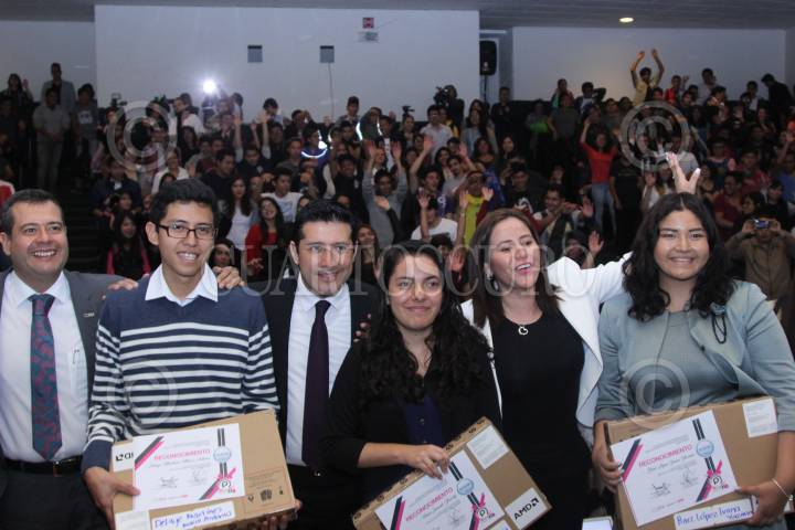 CIUDAD DE MÉXICO, 11AGOSTO2017.- José Ramón Amieva Gálvez, secretario de Desarrollo Social de la Ciudad de México (CDMX); Mauricio Rodríguez Alonso, secretario de Educación de la capital, y Karen Quiroga, directora del programa "Prepa Sí", durante la entrega de reconocimiento y laptops a alumnos de excelencia del programa. FOTO: GALO CAÑAS /CUARTOSCURO.COM