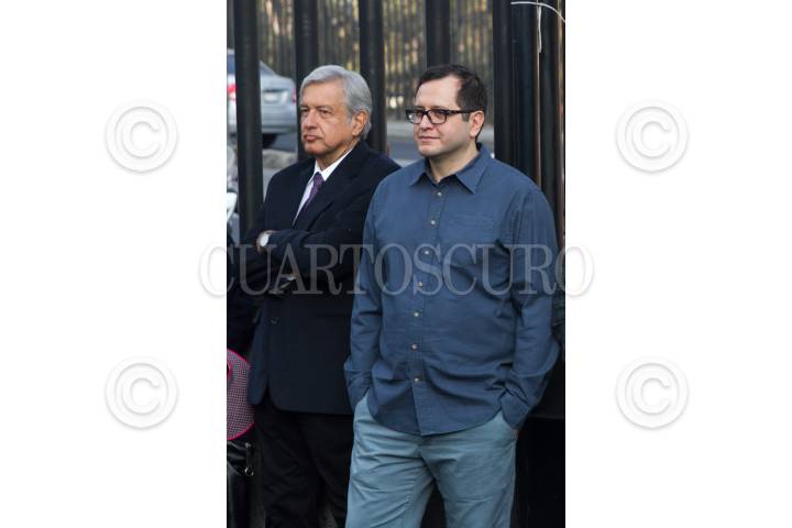 CIUDAD DE MÉXICO, 05DICIEMBRE2018.- Miguel Torruco, secretario de Turismo, conversa con José Ramón López Beltrán, hijo del presidente Andrés Manuel López Obrador, en las escalinatas del Congreso Local de la Ciudad de México, en donde Claudia Sheinbaum tomó protesta como Jefa de Gobierno ante el pleno legislativo. FOTO: GALO CAÑAS /CUARTOSCURO.COM