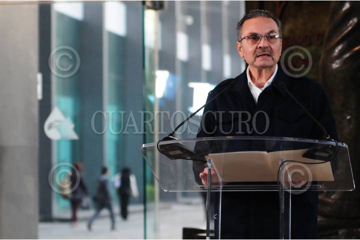 Octavio Romero Oropeza, titular de Pemex, durante la conferencia.
