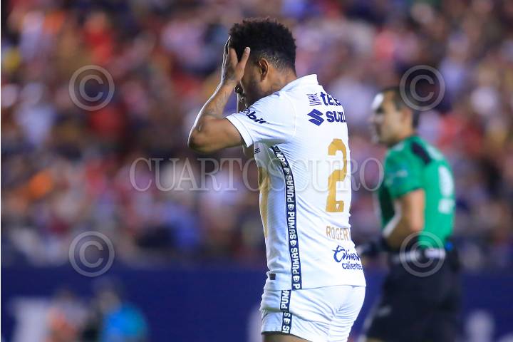 José Rogério de Oliveira Melo (PUMAS) se lamenta la derrota ante el Atlético de San Luis.