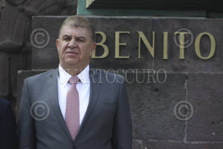 TOLUCA, EDOMEX, 21MARZO2015.- José Sergio Manzur Quiroga, Secretario General de Gobierno del Estado de México, encabezo la ceremonia del 209 aniversario del natalicio de Benito Juárez, el acto se realizó en el Jardín Reforma. FOTO: TONATIU CRUZ /CUARTOSCURO.COM