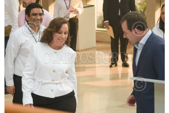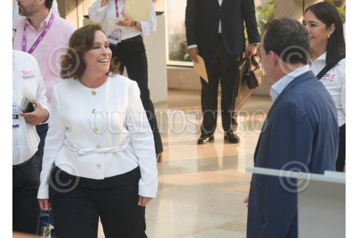 XALAPA, VERACRUZ, 27ABRL2024.- La candidata de Morena, Rocío Nahle García, negó el saludo al candidato de “Fuerza y Corazón por Veracruz”, José Yunes previo al arranque del debate por la gubernatura. FOTO: YERANIA ROLÓN/CUARTOSCURO.COM