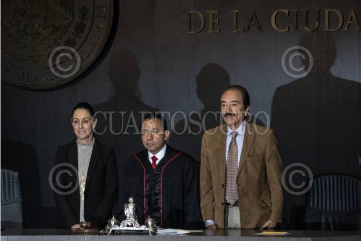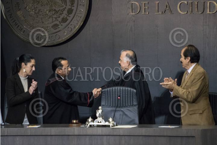 CIUDAD DE MÉXICO, 07ENERO2019.- Rafael Guerra Álvarez, tomó posesión como magistrado presidente del Tribunal Superior de Justicia de la Ciudad de México (TSJCDMX), quien además fue acompañado por Claudia Sheinbaum, Jefe de Gobierno de la capital del país y José de Jesús Martín del Campo, presidente del Congreso local. FOTO: MISAEL VALTIERRA / CUARTOSCURO.COM