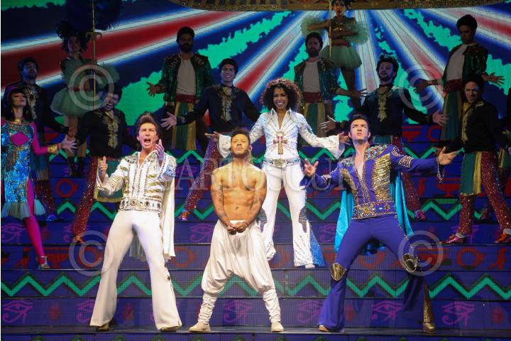 Los cantantes Erick Rubí y Kalimba durante el estreno de la Obra de Teatro Musical "José el Soñador", del director Mariano Detry, realizada en el Centro Cultural Teatro 1